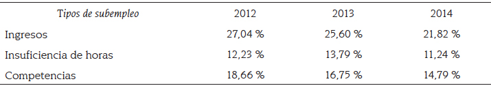 Se debe llamar la atención sobre los subempleados por competencias, los cuales pueden ser un reflejo de los desajustes que pueda tener el mercado laboral en cuanto a la asignación de la mano de obra. Si bien dicha tasa no hace parte de este estudio, sí vale la pena hacer una mención al respecto.