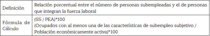 La medición del subempleo permite aproximarse y empezar a entender los niveles de insatisfacción que manifiestan los trabajadores sobre sus empleos, básicamente inscrito en tres categorías: ingresos, competencias y horas. No obstante, dos trabajadores pueden manifestar la misma insatisfacción pero pueden diferenciarse en que uno no ha hecho gestiones para cambiar de empleo, mientras que el otro sí. Esta situación es la que la explica la clasificación entre subempleo objetivo y subjetivo, respetivamente.