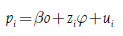 [2]Siendo pi la probabilidad de participar en el mercado laboral del individuo i, zies un conjunto de variables que explican la decisión a participar en el mercado laboral del individuo i, φ es un vector de coeficientes, y u son los errores. Después, se incorpora la corrección del sesgo al modelo de Mincer anteriormente expuesto.