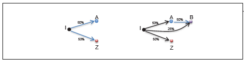 No obstante, el punto de vista del flujo de caja puede resultar incompleto a la hora de caracterizar la estructura de propiedad real en un mercado. Es así como existe una corriente de la literatura que busca caracterizar el control accionario último (por medio de votos) y para la cual no solo es relevante la participación directa del accionista sino que será necesario incluir el control indirecto que el mismo ejerce sobre la empresa B, dada su participación en la misma a través de la empresa A. Es decir, el accionista controla el 50% de B de forma directa, y al menos el 25% de forma indirecta (ver gráfico 1). Por supuesto, el análisis se podría llevar un paso más lejos para incluir la participación que aparecería después de realizar una iteración más, para tener en consideración el control que el accionista ejerce en la empresa A, a través de su participación en la empresa B, y así sucesivamente. Es en esta segunda corriente de la literatura donde se apoya la primera parte de la metodología de este estudio. Para una revisión más detallada del tema se recomienda el estudio de Glattfelder (2013) y una aplicación para el caso colombiano en Gutiérrez, Pombo y Taborda (2008).