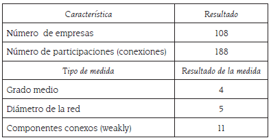 El procesamiento de la información de la matriz de propiedad integrada permite mostrar las principales características generales de la red (ver tabla 1).