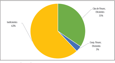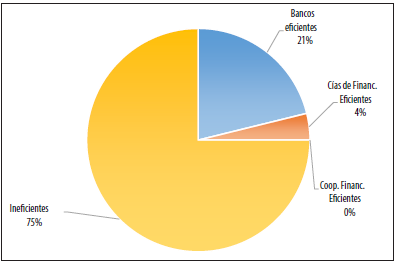 El 67% de las instituciones financieras tiene índices de eficiencia relativa por debajo del 60%. De las compañías de financiamiento solo el 9% es eficiente.