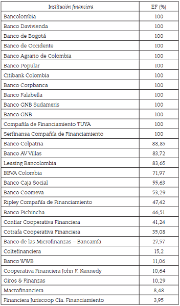 EFFICIENCY OF FINANCIAL INCLUSION IN COLOMBIA, 2014