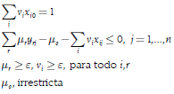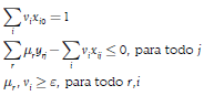 Se aplica la teoría de programación fraccionaria expresada en Charnes y Cooper (1962, p. 67) y se realizan los siguientes cambios de variables: