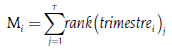 Este contraste de estacionalidad basado en rangos, desarrollado por Kendall y Ordb (1990), consiste en ordenar las observaciones de cada trimestre y asignarles un valor de 1 a la menor, hasta 4 a la mayor. A continuación, para cada trimestre se suman los valores de todos los años, por lo que:
