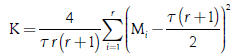(5)Donde r es el número de observaciones por año (4 con datos trimestrales). Tal estadístico se distribuye como una X2 con (r - 1) grados de libertad. Luego, para valores grandes de K (superiores al cuantil considerado de la X2) se concluye que existe componente estacional.