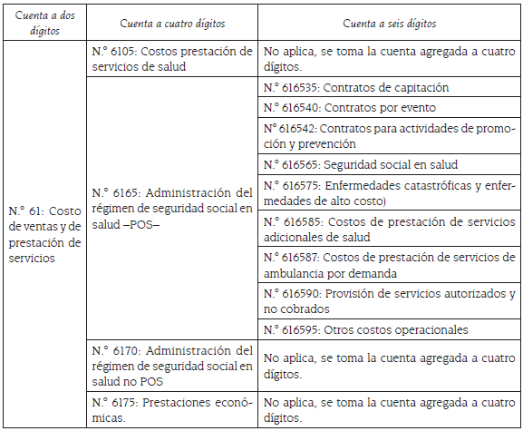 Otro aumento importante, aunque solo referente al último año de análisis (2015), es el relacionado con la cuenta Seguridad social en salud (N.° 616565). Ello, debido a la implementación por parte de las EPS subsidiadas de lo dispuesto en el Decreto 2702 de 2014 del Ministerio de Salud y Protección Social, donde se establecen las directrices para la constitución de sus reservas técnicas.