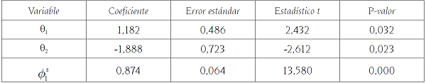 Adentrándose al aspecto formal, este modelo captura la característica estacional y cíclica de la serie de interés, entendiendo por cíclica la asociada al componente autorregresivo y de media móvil. Se expresa como sigue en (10).