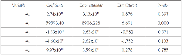 Los resultados de la estimación de [8] se presentan en la tabla 3, por lo que se tiene la siguiente ecuación: