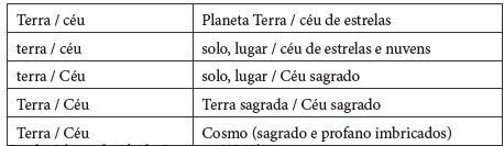 Em Campos (1995:19 – Quadro I acima), temos um quadro com possibilidades diferentes de sentido para “céu” e “terra”, utilizando inclusive iniciais maiúsculas ou não. Não tenho clara a possibilidade dessas distinções entre os juruna. Céu como firmamento seria distinto de céu sagrado? Não sei. Isso demanda pesquisa. O que sei é que, além das estrelas, no mundo sagrado, existe Sela’ã e os que com ele vivem. Aldeia celeste? Local para onde viajam as almas no pós-morte? Mas Sela’ã tem uma estrela-telescópio, com a qual vê os juruna, na Terra. Estão Sela’ã e os que com ele vivem separados de todas as estrelas, do “caminho do porco”[24]? Acho que tudo se imbrica e talvez seja difícil separar. As constelações marcando um tempo e portanto um clima que sempre se repete, assim como elas. Isso nos faz pensar em polissemia, com um item lexical apenas, tendo apenas variações de significado, mas dentro de um mesmo campo semântico.