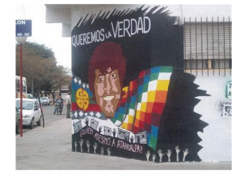 Tanto el poema como el mural relacionaron la situación de injusticia que vivió Atahualpa con su pertenencia indígena y la historia de dominación estatal hacia los pueblos originarios. En el mural, el retrato de Atahualpa se mostraba sobre el fondo de los emblemas (la Wenufoye mapuche y la Wiphala aymara), enmarcado por el título “queremos la verdad”. En el poema, la búsqueda de la verdad no refiere sólo a comprender el presente —es decir las circunstancias del asesinato de Atahualpa—, sino que se vincula con el pasado y con la verdad de los pueblos originarios, relativa tanto a las experiencias de dominación colonial como a las formas de vida propias silenciadas por ellas. La lucha contra el silenciamiento no refiere así sólo al presente y a este caso, sino a un proceso histórico colectivo.