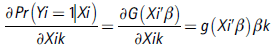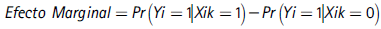 (4a)Es importante anotar que tanto el modelo logit como el modelo probit se estiman por el método de Máxima Verosimilitud (MV). Ahora bien, respecto al cálculo de los efectos marginales, en general, se tiene:
