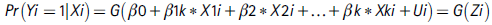 (1a)Donde, Zi = β0 + β1*X1i + β2*X2i +...+ βk*Xki + Ui