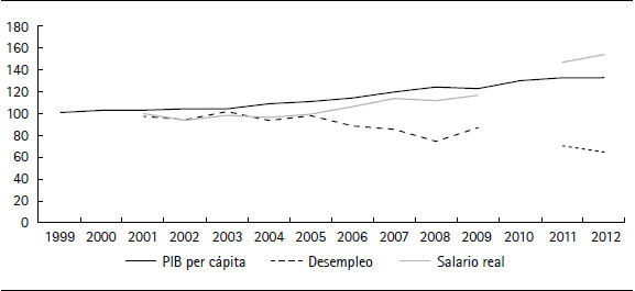 a El desempleo se mide para mayores de 15 años de edad, sin considerar la zona rural de la región norte. El índice de salario real surge del ingreso horario derivado de la ocupación principal de todos los individuos ocupados. En el 2000 y el 2010 no se realizó la encuesta.