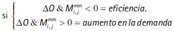 La medida de mitigación que implique un uso eficiente o sustitución de insumos requiere variar la demanda intermedia del sector productivo. El costo de operación y mantenimiento que genera la ejecución de la medida (ΔO & Mmm) se usa para aumentar o reducir el requerimiento del bien intermedio e o j en el proceso productivo del sector i (en el caso de los energéticos
