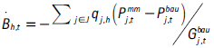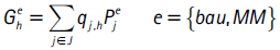 Los hogares beneficiados en el escenario de mitigación serán aquellos que consumen relativamente bienes cuyo precio es menor. El precio de la canasta o gasto (Ghe) del hogar h en el escenario e está dado por la siguiente relación