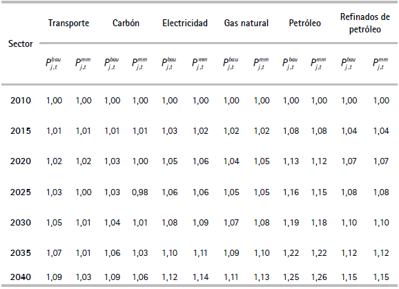 Anexo 3. Serie de precios usada para las microsimulaciones Pj,tmm - Pj,tbau