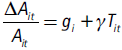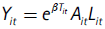 Now, dividing both sides of equation (4) by Lit, taking logs, differencing with respect to time and replacing equation (5) yields: