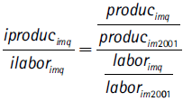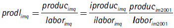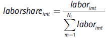 (8)where produc and labor are the number of firms and work force respectively. The subscripts i, m and t from now on correspond to industry, municipality and year. The top limit of the sum Ni depends on the number of municipalities in which the industry i is present. The market share and labour share will be useful to separate the MMS indices in municipalities.