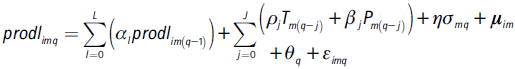 (5)Equation (5) represents the growth of labour productivity that is affected by weather.