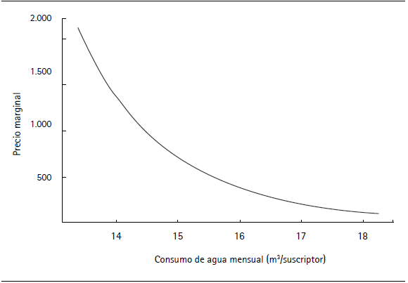 Por la especificación de la función de demanda tipo log-log el coeficiente estimado de la variable precio corresponde a la elasticidad condicionada al bloque de consumo observado. Para la ciudad de Manizales, el coeficiente estimado fue -0,10, es decir, la demanda de agua es inelástica. Resultado que es consistente con estudios previos de demanda de agua que usaron el MDC (Baerenklau et al., 2014; Jaramillo-Mosqueira, 2005; Medina y Morales, 2007; Olmstead et al., 2007), y que podría explicarse por la inexistencia de sustitutos cercanos del agua (Arbués et al., 2003; Foster y Beattie, 1979; Savenije y Van der Zaag, 2002; Worthington y Hoffmann, 2006), y por el uso del agua para satisfacer necesidades tan básicas como la preparación de alimentos o el consumo humano (Savenije y Van der Zaag, 2002). En países de Europa con ingresos per cápita altos, Schleich y Hillenbrand (2009) sugieren que la baja sensibilidad de los hogares ante cambios en los precios del agua se debe principalmente a que el gasto de un hogar en el servicio de provisión de agua es muy bajo en comparación con los gastos totales del hogar.