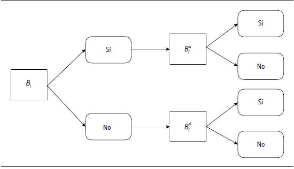 De acuerdo con Hanemann et al. (1991), en el contexto de doble pregunta en la disponibilidad a pagar, la pregunta inicial propuesta al individuo "i" (Bi) es preguntada de nuevo en función a la primera respuesta (Bid o Biu). Donde Biu es el segundo precio propuesto después de una respuesta positiva al primero, Bid es el segundo precio propuesto después de una respuesta negativa al primero. En la figura 2 se ilustra el procedimiento de elección en el formato doble límite.
