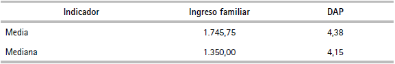 La capacidad de pago se define como la proporción del ingreso familiar que se destina al pago de los servicios de agua potable y alcantarillado. Según la Organización Panamericana de la Salud (OPS), así como el Banco Interamericano de Desarrollo (BID), esta proporción no debe superar el 5% de los ingresos disponibles de las familias beneficiadas por el proyecto. En consecuencia, en el caso del estudio de valoración contingente la media y la mediana de los ingresos y de la DAP calculados con el modelo doble límite lineal se muestran en el cuadro 15.
