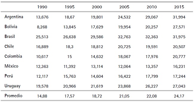 Los estudios sobre el impacto de la liberalización, como fenómeno aislado, en el crecimiento y la productividad de los países latinoamericanos son poco concluyentes3 y varían de acuerdo con los periodos utilizados en las comparaciones. Sin embargo, autores como Ocampo y Ros (2011) señalan que Colombia creció menos después de la apertura con respecto a las décadas previas. Pero, además, el crecimiento de la productividad, medida como el incremento del producto por trabajador, tampoco fue mayor en la era posapertura. Si bien es cierto que Colombia ha tenido una política más proteccionista que el promedio de América Latina, los resultados a nivel regional son similares a los colombianos: menor crecimiento económico y menor crecimiento de la productividad. Ahora bien, no es esto un argumento para decir que la liberalización ha sido perjudicial para las economías latinoamericanas. Más bien, sirve para pensar que una mayor apertura económica no es benéfica en sí misma y bajo cualquier circunstancia, sino que debe ejecutarse de una manera estratégica y planificada.