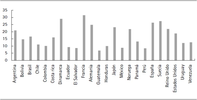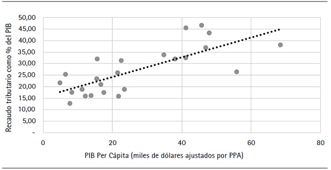 Al examinar el aspecto tributario de los países latinoamericanos, una de las primeras características que saltan a la vista es el bajo recaudo de impuestos como proporción del PIB. De hecho, algo de esto se puede ver en la figura 2, comentada en la introducción. Como indican Cárdenas y Perry (2011),