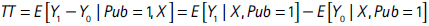 En donde la variable de interésYes el puntaje en la prueba ICFES;Y1 denota el resultado potencial de un individuo que fue tratado yY0 el resultado potencial para un individuo en el grupo de control. La variable binariaPubdenota el estatus de tratamiento de cada individuo,Pub= 1 si el individuo fue tratado, es decir, terminó bachillerato en un colegio público, yPub= 0 si terminó en un colegio privado (grupo de control). Note queE[Y1 | X, Pub = 1] es el promedio del puntaje del ICFES de los individuos que asistieron a colegios públicos en el 2013, yE[Y0 | X, Pub = 1] es el promedio del puntaje que hubieran tenido los individuos que asistieron colegios privados en el 2013 en caso de que hubieran asistido a un colegio público10.