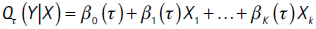 Se ordena por cuantiles (percentiles, deciles, quintiles, cuartiles, etc.) la distri bución condicional de una variable. Para esta metodología es crítico expresar los cuantiles como un problema de minimización: