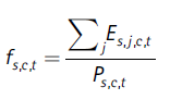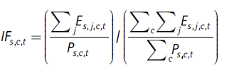donde E es el empleo pleno y trabajo decente por sexo s, en el sector j, en la ciudad c en el año t, y P es la población en edad de trabajar (por sexo, ciudad y año).