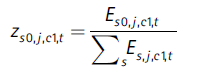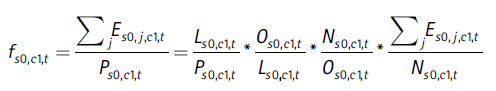Por claridad expositiva, en el desarrollo de las descomposiciones que siguen vamos a referirnos solo al sexo femenino (s0) y a la ciudad 1 (c1). Las ecuaciones serían análogas para el sexo masculino (s1) o para cualquier ciudad (ci).