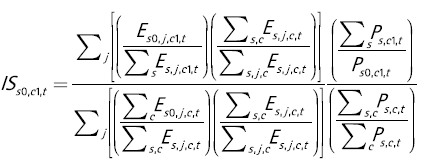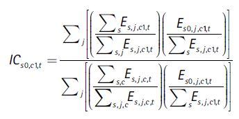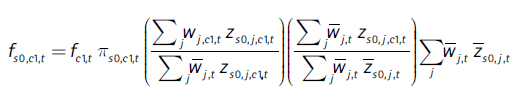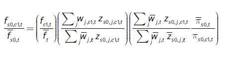 El segundo componente de la Ecuación (20) es el índice de composición sectorial por sexo de la ciudad, ICs0,c1,t , el cual puede escribirse en forma más detallada así (con las ecuaciones (16) y (17)):