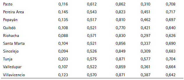 Cuadro A5. Promedios y desviaciones estándar de las participaciones w y z (por ciudad, de los promedios entre 2008 y 2016)