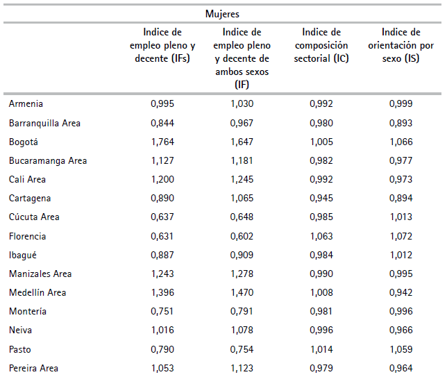 Palabras clave: empleo de las mujeres, condiciones de empleo, creación de empleos, sector informal, sector industrial, Colombia.