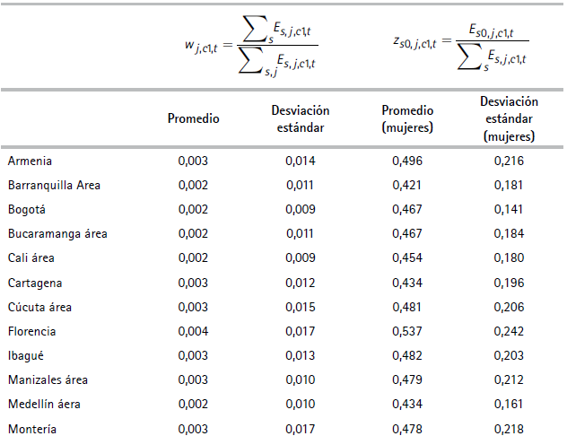 Por su parte, los términos zs0, j ,c1,t son las participaciones femeninas en cada sector j en la ciudad c1: