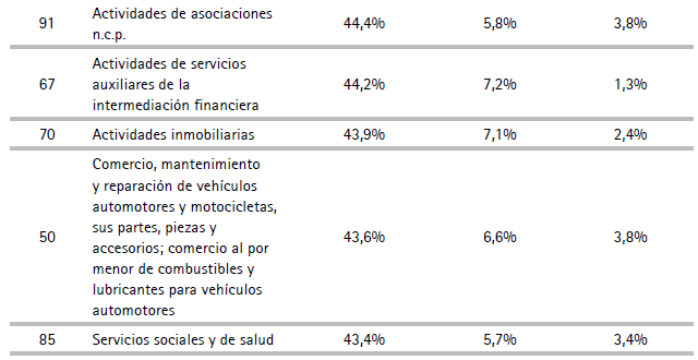 Cuadro A.6 Participación femenina en el empleo por sector (sectores con al menos 0,5 % del empleo femenino nacional)