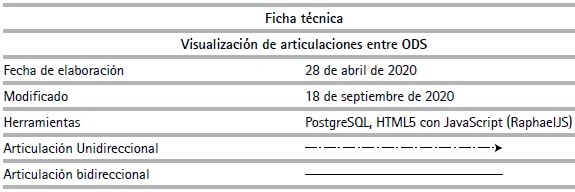 Nota: La Figura 5 muestra las interacciones entre los ODS a partir de los casos de estudio. (UEC, 2020). Herramienta utilizada: PostgreSQL, HTML5 con JavaScript (RaphaelJS)12.