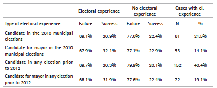 Past research does not clearly indicate that recall organizers are necessarily associated with a party. I examine and quantify whether organizers ran for any election in the past and whether they were members of the party. However, in my next hypothesis, I examine the relationship between the removal of a mayor in already initiated recall elections and the electoral experience of the organizer. I assume that people with political (electoral) experience are more likely to be successful at mobilizing the electorate than in actually removing a mayor. This assumption is based on the literature about candidate quality (Green & Krasno, 1988, 1990; Jacobson, 1990; Lazarus, 2008), which points to quality candidates being more successful in elections. The quality of candidates is usually measured by electoral experience; i.e., candidates running for office and winning elections. Thus, I expect recall organizers with electoral experience to be better quality organizers in this respect and more successful at mobilizing people to remove a mayor as they have electoral experience and they manage to get enough signatures to initiate recall elections.