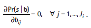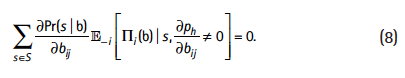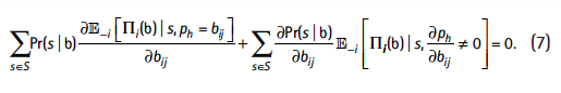 (7)Dado que cambios marginales de los precios ofertados por las firmas afectan los resultados del mercado solamente cuando ellas establecen el precio spot con una probabilidad positiva, la derivada de los beneficios esperados de la firma con respecto a los precios ofertados debe estar condicionada a ph = bij.