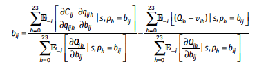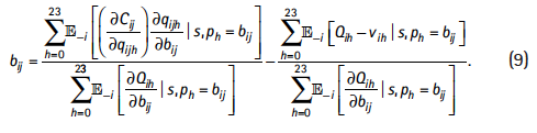 Proposición 1. Dado el supuesto 1, una CPO necesaria para la optimalidad de bijpara la unidad j de la firma i, en la segunda etapa del juego, con vih dado para h = 0, …, 23, es