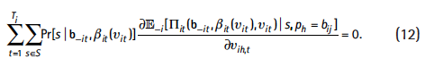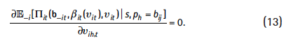 (12)Por razones similares a las expuestas en la prueba de la proposición 1 (Anexo 1), tenemos que Pr[s | b-it ,βit (vit)] ≠ 0, para todo t = 1, …, Ti. Esto implica que, para cada día t, debe cumplirse lo establecido en la ecuación (13):