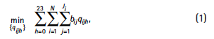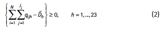 El operador del mercado recolecta todas las ofertas realizadas en t - 1 y define cantidades de despacho (qijh ) y el precio spot (ph) para t resolviendo el problema de la ecuación (1) (sujeto a las restricciones 2 y 3):