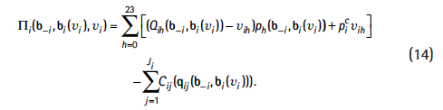El problema que resuelve la firma i en la segunda etapa, para cada día, es elegir una estrategia de oferta bique maximice sus beneficios esperados diarios según la ecuación (6):