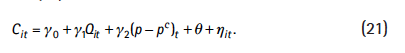 Dada la predicción 1 (que está relacionada con la ecuación 19), proponemos el siguiente modelo econométrico: