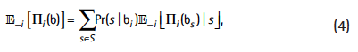 (4)donde Pr(s | bi ) es la probabilidad de que una combinación de unidades s ∈ S sea despachada, condicionada a las ofertas de la firma i. Para cada s, las unidades despachadas están determinadas por las ofertas realizadas bs.