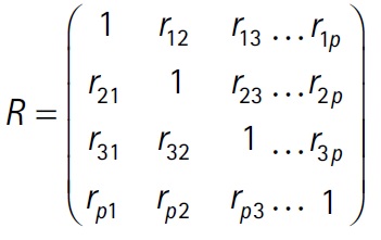 (1)Este proceso de estandarización se convierte en el último paso antes de la aplicación del ACP. Posteriormente, se ejecuta dicha técnica que tomó como base la matriz de correlaciones, ya que, según Restrepo et al. (2012), si se trabaja con variables que pasaron por el proceso de estandarización debido a que las escalas de medida difieren, entonces de los compontes principales se obtiene de la diagonalización de la matriz de correlaciones (R), la cual se expresa como: