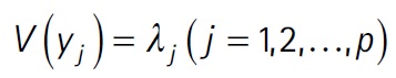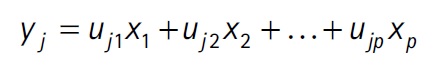 (3)Donde uj1,uj 2, ...,ujp representan los vectores de coeficientes que permiten obtener la combinación lineal para conformar el respectivo componente y x1,x2,... xpson las variables originales estandarizadas.
