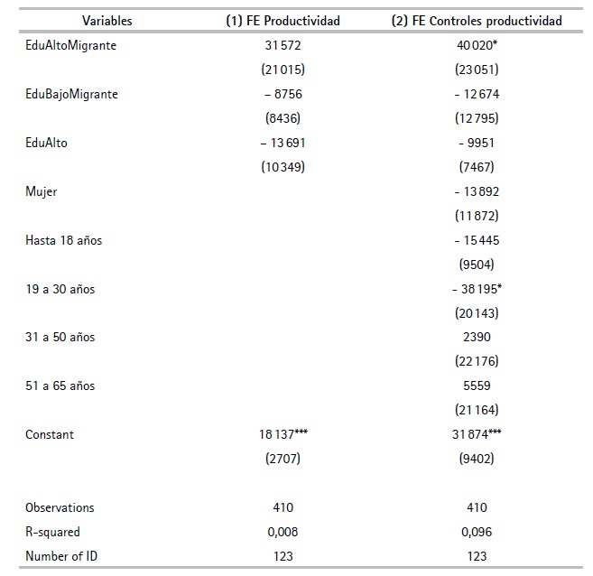 que tenga un mayor aporte a la productividad frente a los no migrantes con nivel educativo bajo, teniendo en cuenta que es una población con mayor capacitación; (ii)para